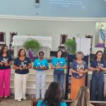 Em seguida tivemos o momento “Vivendo o Grupo na Prática” (terço, momento de formação, momento oracional e demais momentos) para que, as coordenadoras que ainda se encontravam com alguma dúvida tivessem a oportunidade de presenciar como o grupo deve acontecer a cada encontro e como é importante sermos fiéis ao tripé do movimento “OBEDIÊNCIA, HUMILDADE E UNIDADE”, para que tudo seja feito conforme proposto.