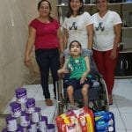 Mães do Grupo da Paróquia Senhora Sant’Ana, Varjota – CE, em mais uma Ação Solidária. Abrão tem 12 anos, não anda e nem fala. Ele come só pela sonda e seu leite custa R$ 40,00. Sua mãe nos procurou, pois não tinha condições e aguarda o pedido judicial para receber pelo governo. Enquanto isso, ele consome em um dia e meio uma lata; ele também precisa de fraldas descartáveis. Sua mãe é uma mãe orante e ativa no movimento. Agradecemos a todos que nos ajudaram nessa ação!