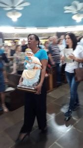 No presença da Comunidade, a Procissão foi conduzida pela Coordenadora Estadual Janaína, seguida Coordenadora Conceição que carregava a imagem da Nossa Padroeira, Nossa Senhora de La Salette; pelas Coordenadoras dos Ministérios Estaduais; Mães da Divino Espírito Santo e as Mães do Santuário, enquanto a Ana Paula tocava e cantava o nosso Hino, acompanhada pelas vozes de todas as Mães presentes.