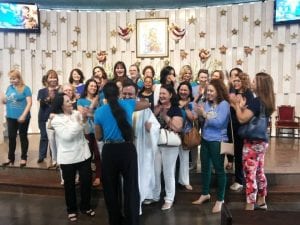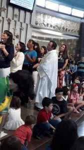 Durante toda a Santa Missa, o Padre Celso citava o nosso Carisma, o caminhar seguro do nosso Movimento. Disse ainda que, o Movimento começou no Santuário, através do Ana Paula e Ana Rocha!