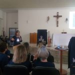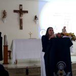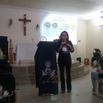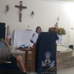 e após seguiu com a explicação dos 5 anos a serem percorridos pelos grupos de mães, sendo eles: Ano A: Reconciliação, Ano B: Oração, Ano C: Eucaristia, Ano D: Penitência e Ano E: Missão. Finalizando com pedido a sermos mães adoradoras, mães eucarísticas e para iniciarmos uma vida de missa diária.